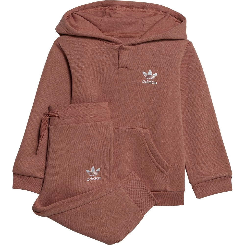 This infants´ hoodie set features classic adidas branding on the chest and thigh.