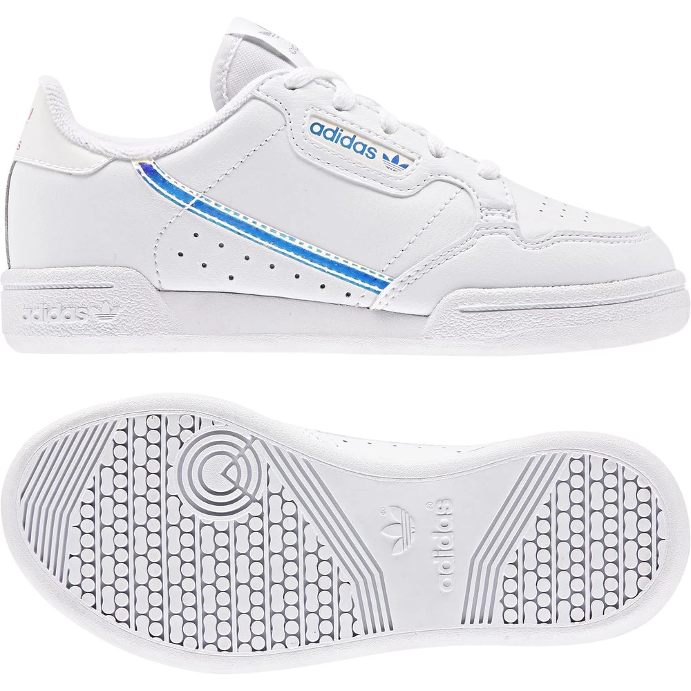 Inspired by an 80´s indoor shoe, the Continental 80 updates a retro style. The double cupsole and logo insert at the laces are from the archives. This kids´ version is made of coated leather with an iridescent stripe.Lace-up closure.Coated leather upper with iridescent stripe.Textile lining. Rubber outsole.Lightweight EVA midsole.