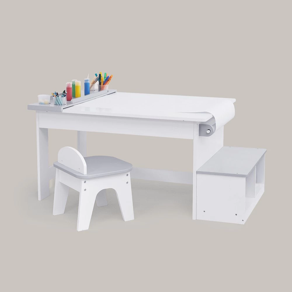 INCLUDED: This complete artist set includes a table, art tray, storage bench and chair.