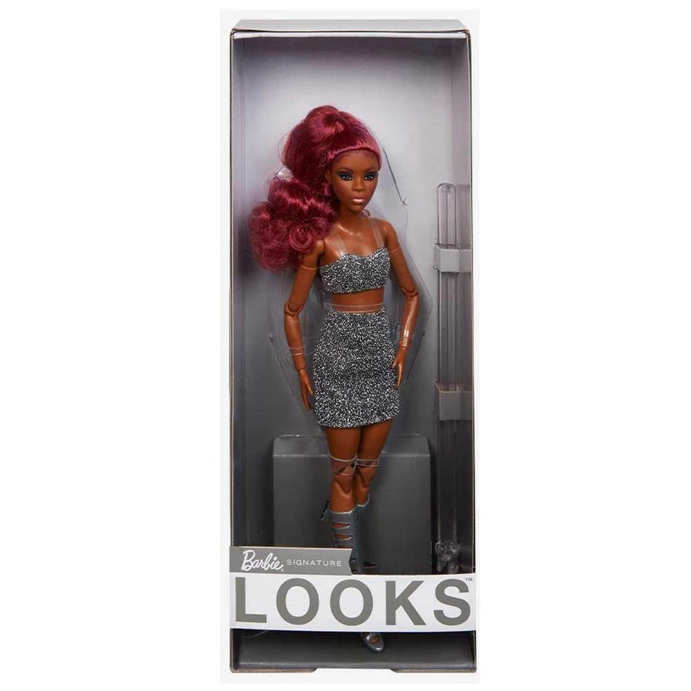 This Barbie Looksâ„¢ doll features a unique face sculpt and glossy red curls with high-fashion highlights.