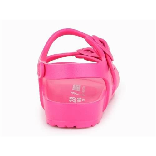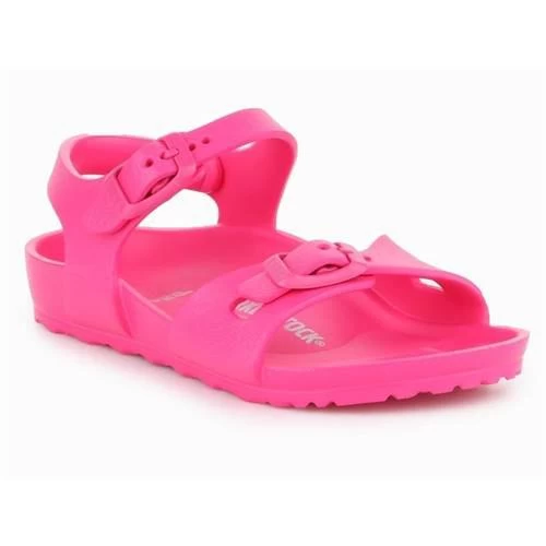 The Birkenstock Rio Eva 1015463 model catches the eye with its original design, and at the same time with a coherent and thoughtful distribution of accents – designers have adapted to current fashion trends. Birkenstock Rio Eva is also characterized by great workmanship. The upper deserves special attention – it was made of the (synthetic) component, which guarantees proper ventilation and perfectly fits the leg. The innovative solutions (no system) used as structural elements are responsible for the comfort. The sole is also an extremely important element of everyday shoes. In this model, Birkenstock is durable, flexible and gives good grip (also on slippery surfaces) – it was made of a durable compound, resistant to abrasion. The thermal protection profile of this model has been adjusted summer. Universal shoes Birkenstock for kids is the result of many years of experience of designers and hundreds of tests – the end result is comfort and confidence at every step.