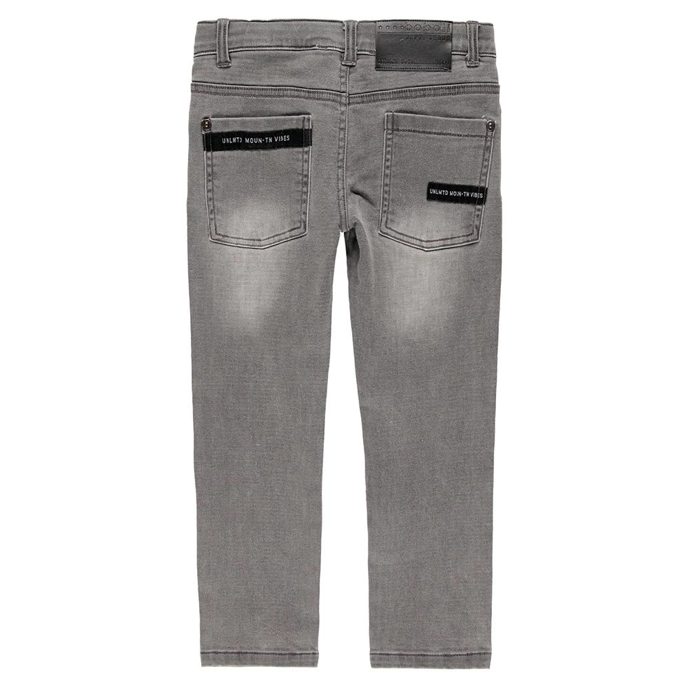 Boys´ trousers in grey stretch denim, fastens with a button.