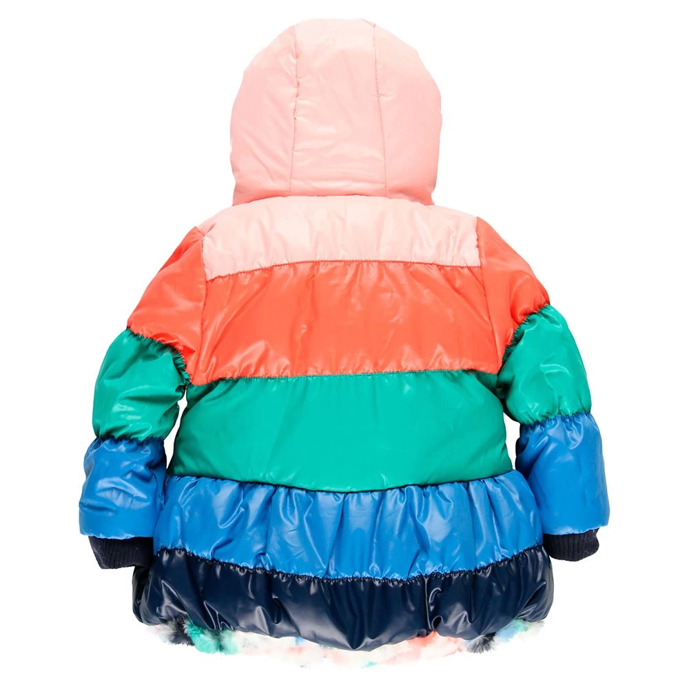 Girls´ reversible parka in synthetic fur and technical fabric.