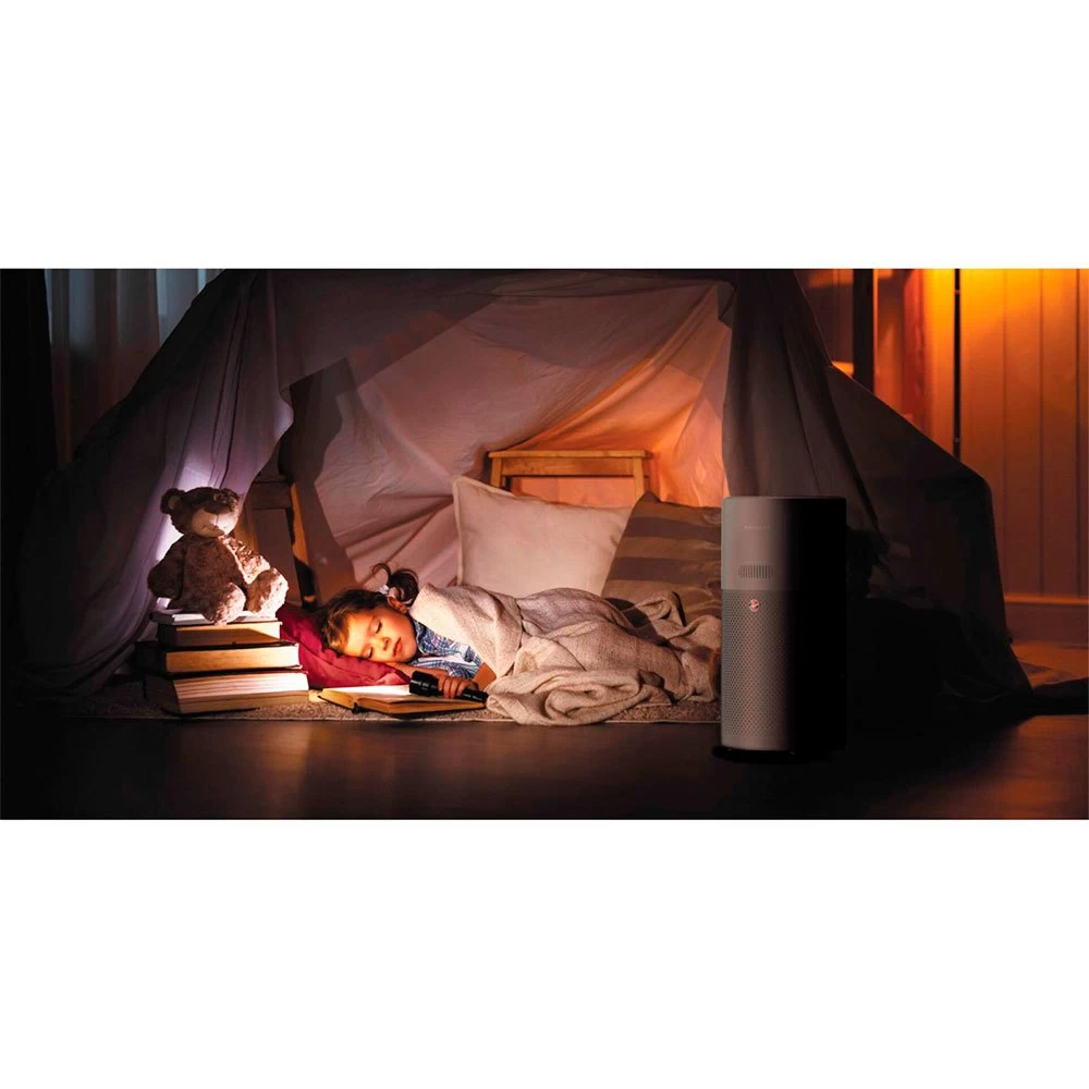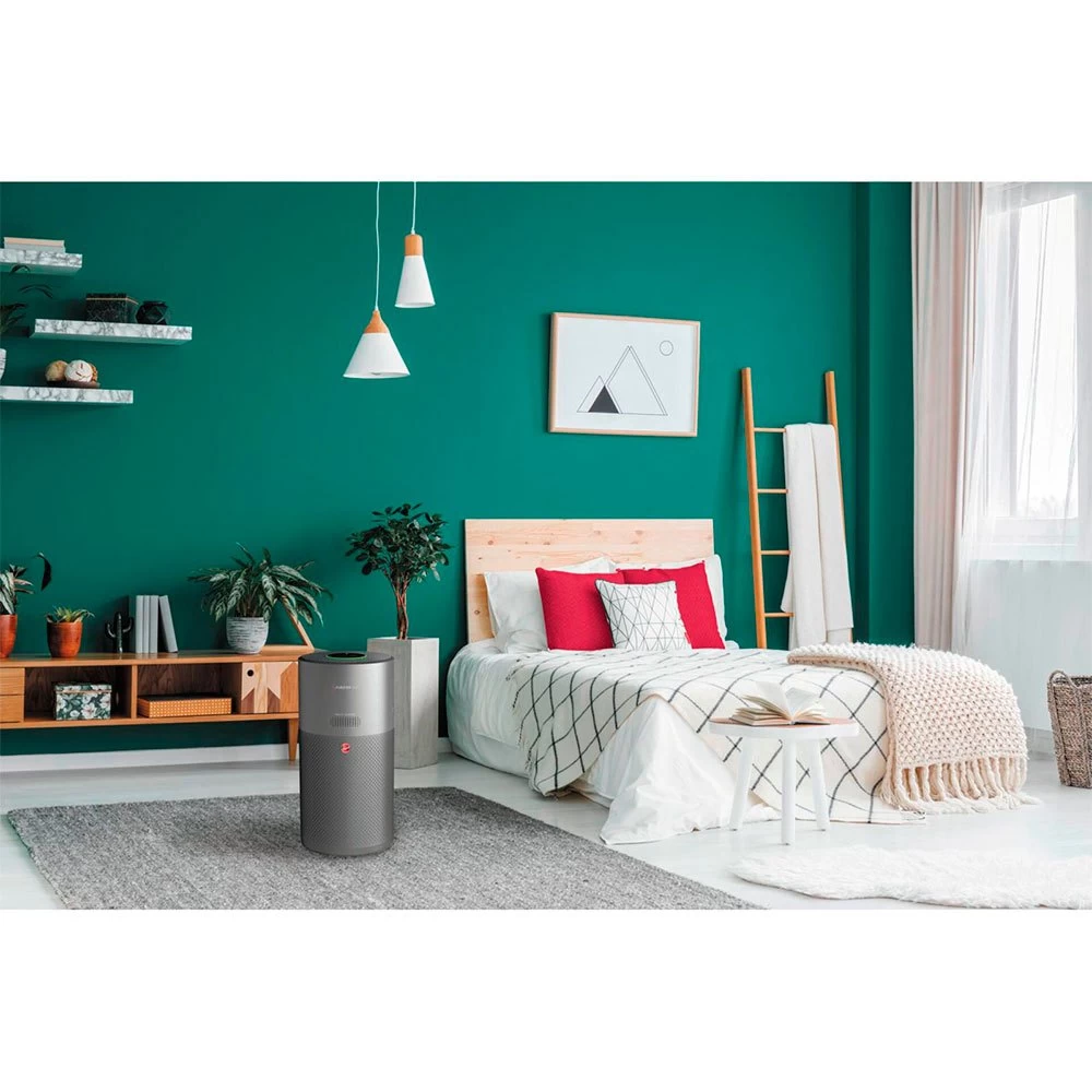 – H-trifilter (three layers): washable outer layer (dust, animal hair), h13 hepa filter (spores, bacteria, pollen, dust mites, external contamination), activated carbon – Filter (odours, no2, voc, formaldehyde)
