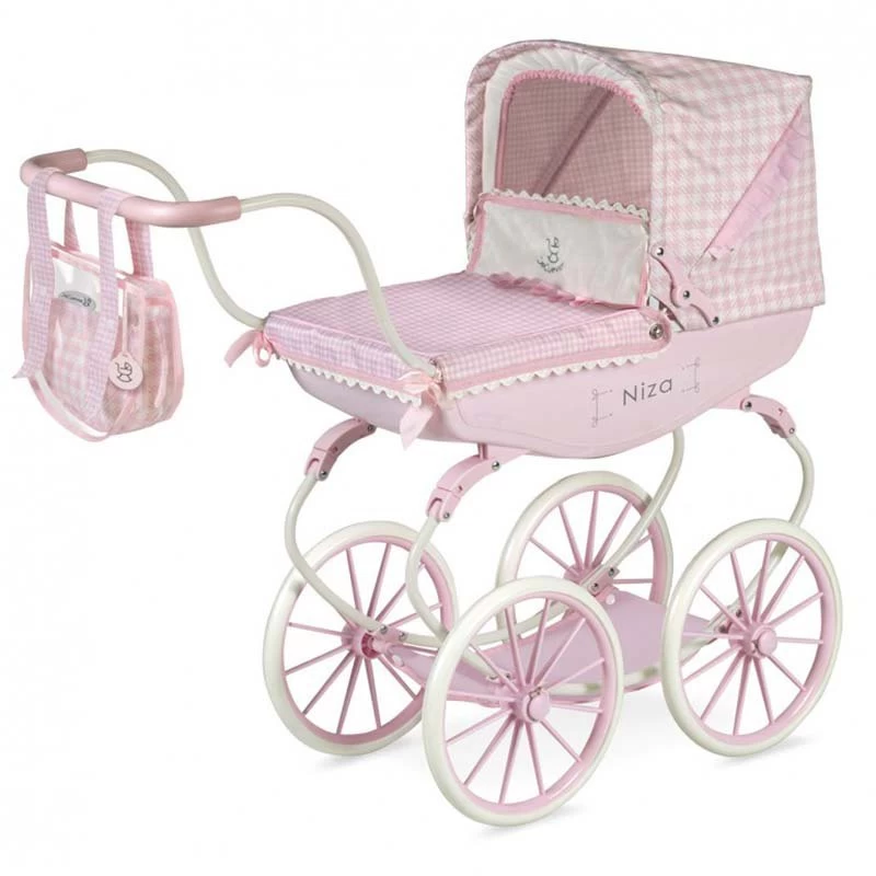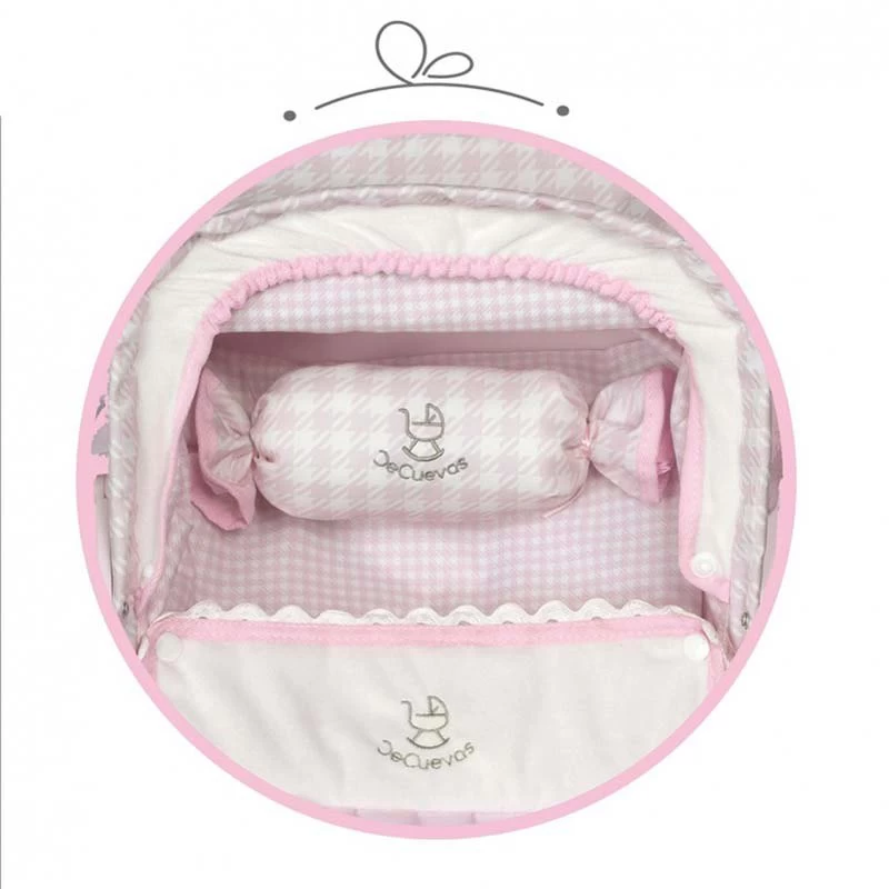 Vintage doll car stamped in pink and square vichy blank and pink.
