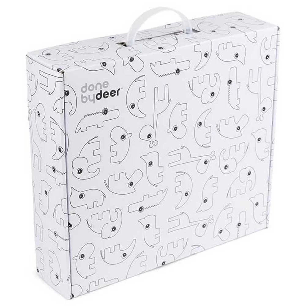 With the Play time goodie box you get four of the Done by Deer baby must-have toys combined in one, cute giftbox. The box includes a Tummy time activity toy, a Comfort blanket with Raffi, a Silicone teether and a Squeeker rattle with Raffi.