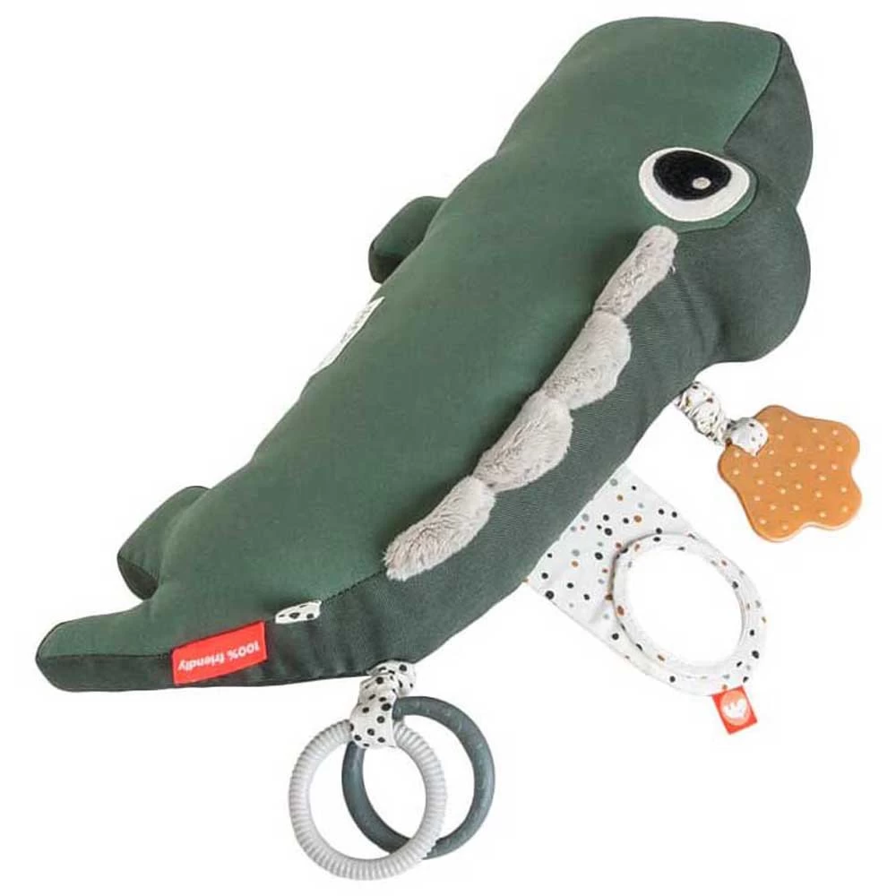 With a teether and rings to soothe itchy gums, tactile textures, a small mirror, tags, crinkle sounds and a jittering crocodile tummy there are plenty of activities to explore.