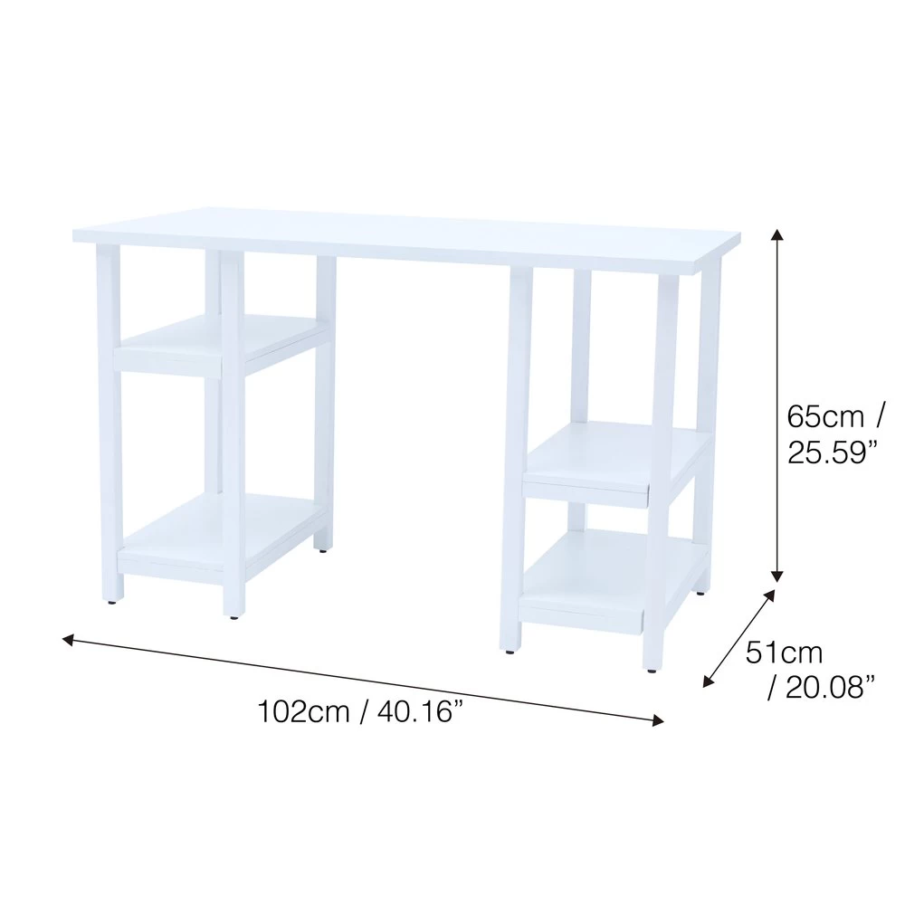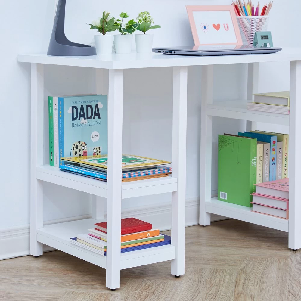AMPLE STORAGE: 2 Shelves either side underneath the table top are perfect to use as bookshelves, storage for notepads, craft or school supplies and more!