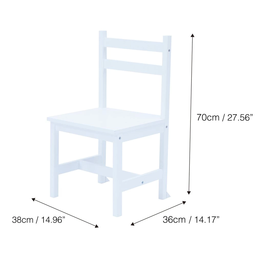 DIMENSIONS: This kids table measures L81 x W44.5 x H82.4 cm and the chair measures L35 x W37.5 x H69.6 cm. Reccomended for ages 3+.
