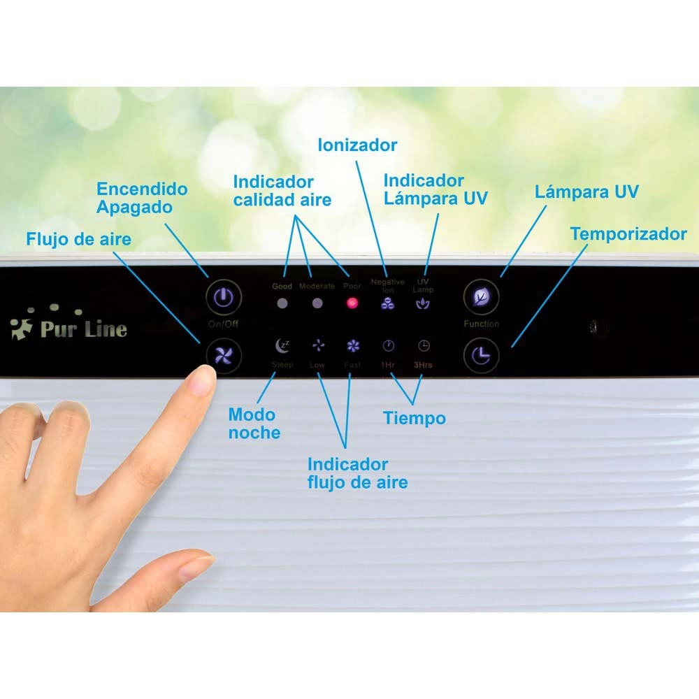 Technology: Electronic purifier with Prefilter, HEPA filter, Active Carbon filter, and Ionizer.