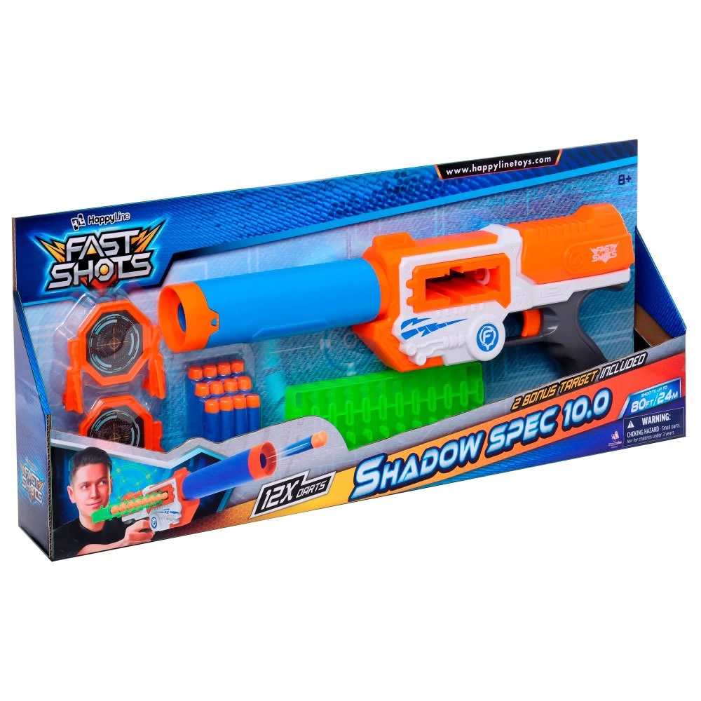 SHADOW SPEC 10, 0 SHADOW SHADOW METRALLERA Gun that includes 12 foam darts with 10 shots charger and silencer with open box.