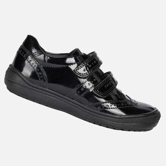 With a patent-leather upper embellished with brogue perforations, it will be an easy match to school uniform.