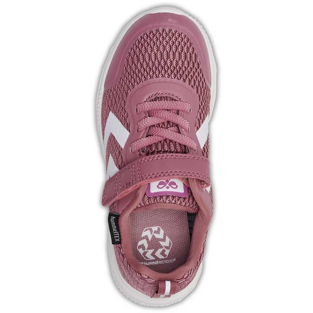 – Recycled fabric mesh upper with hotmelt overlays and hummelTEX membrane – Lightweight EVA outsole – Elasticated laces and cuttable velcro closure – Reflective detail.