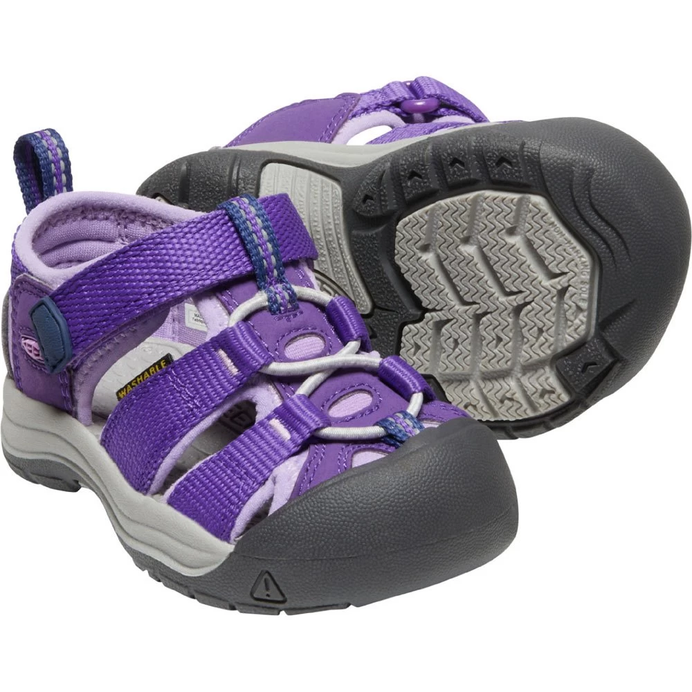The elastic cord lace and adjustable hook and loop strap lets kids put them on and take them off by themselves.