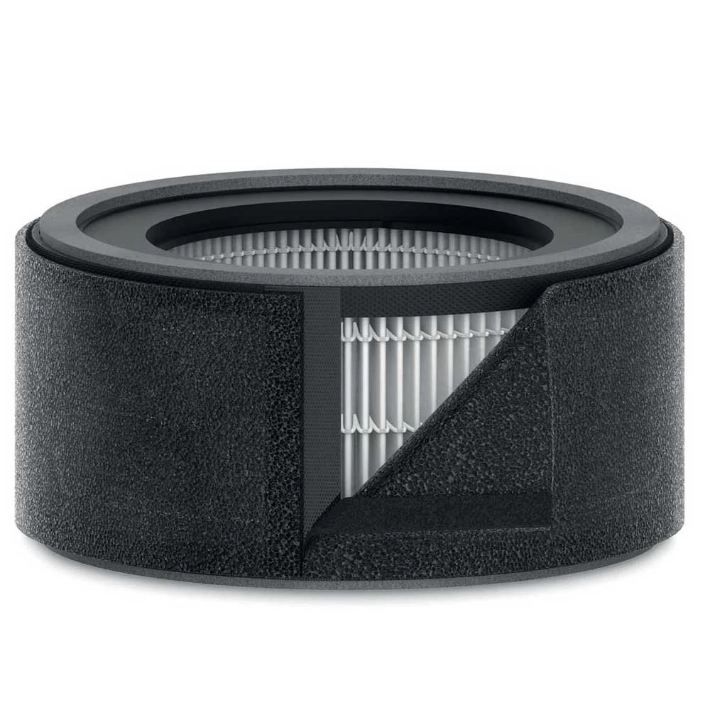 The HEPA filter is at the core of purifying your air and replacing it is essential for optimal air purifier performance. This 2-in-1 filter combines a carbon prefilter for capturing large particles like hair and dust with a HEPA type filter for trapping small particles.