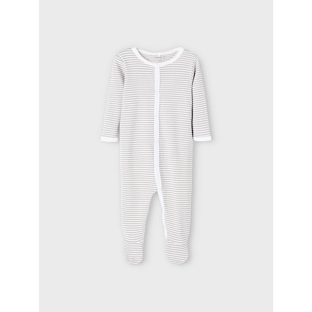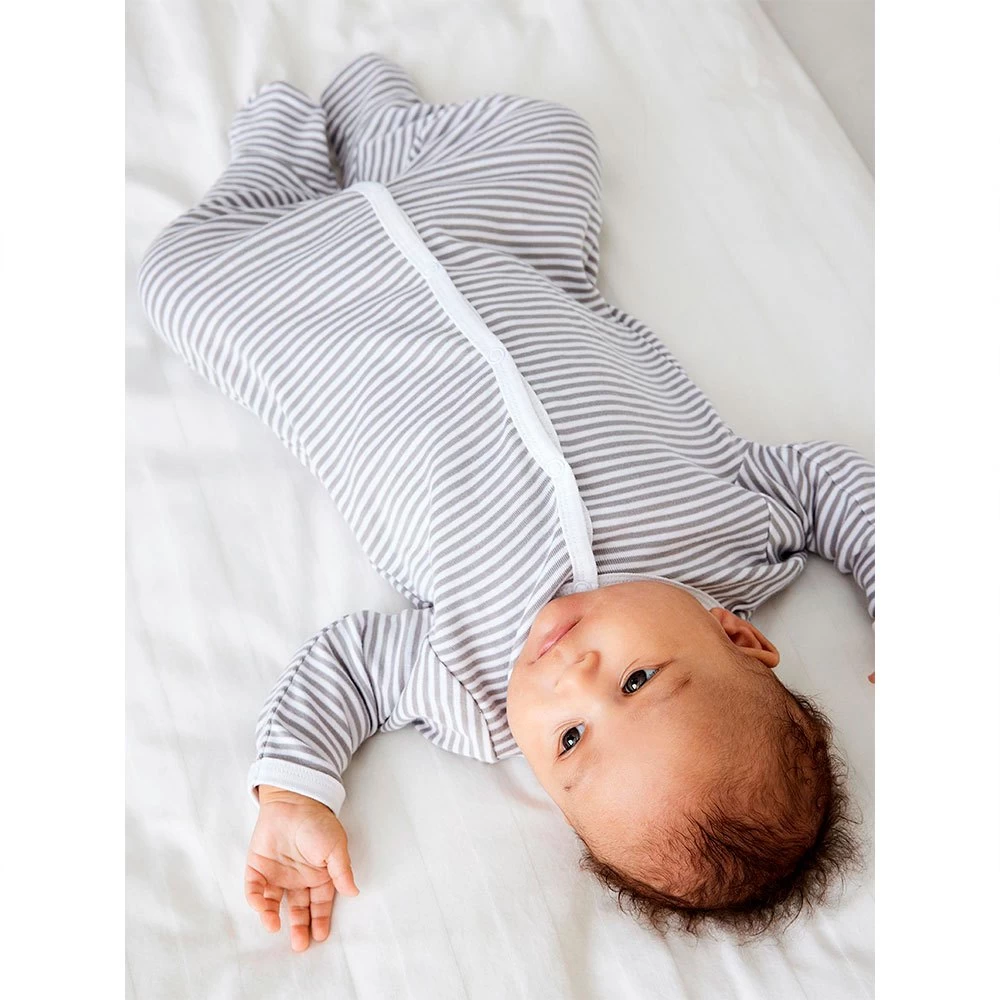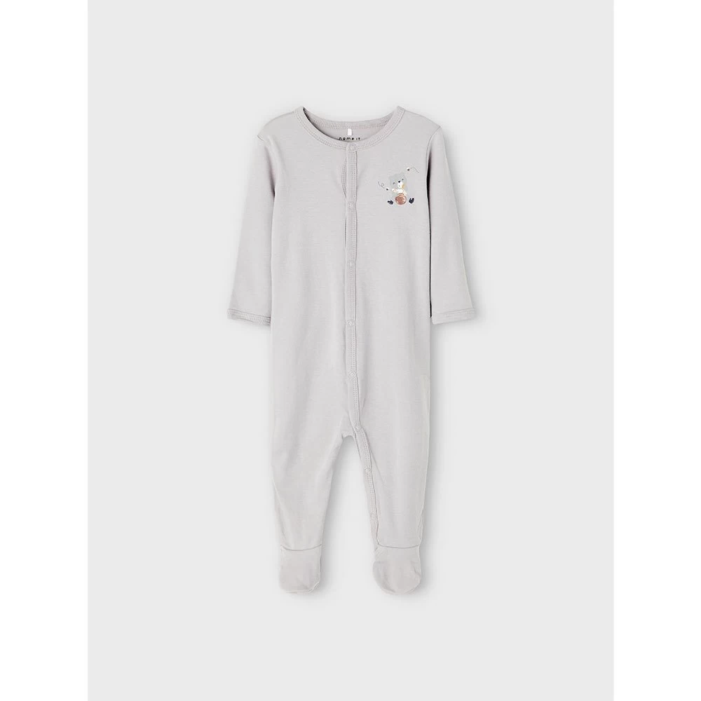 The muted colours and functional details such as the attached feet and press stud fastening ensure a cool and soft style for both activity and sleep.