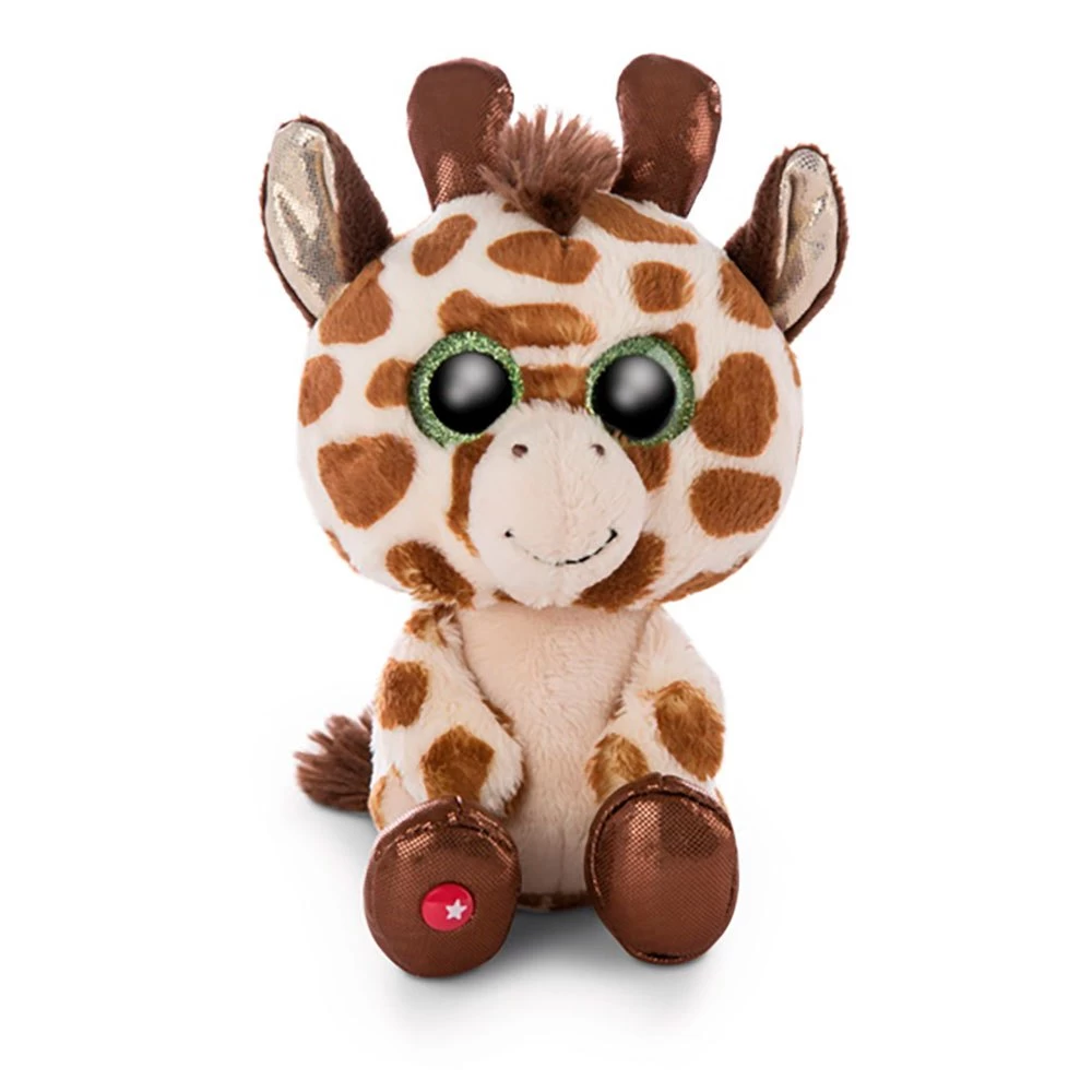 The GLUBSCHIS – The original, only from NICI. The GLUBSCHIS are the epitome of cuddly toys with big, buggy eyes, which enjoy great popularity among children. However, the original GLUBSCHIS from NICI are not only sugary sweet and heartwarming, but at the same time also made of high-quality plush and tested according to high safety standards. This makes them a wonderful gift or souvenir for children and young at heart adults. The GLUBSCHIS – the original only from NICI. The GLUBSCHIS giraffe Halla is brown spotted as it should be for a real giraffe. As a typical GLUBSCHI, she has big glittery eyes and an adorable mop of brown hair on her head. Her cute ears are lined with glitter fabric and her little feet with the red NICI Star are shimmering brown! What a great NICI giraffe! c 2021 Carletto, licensed by NICI GmbH´