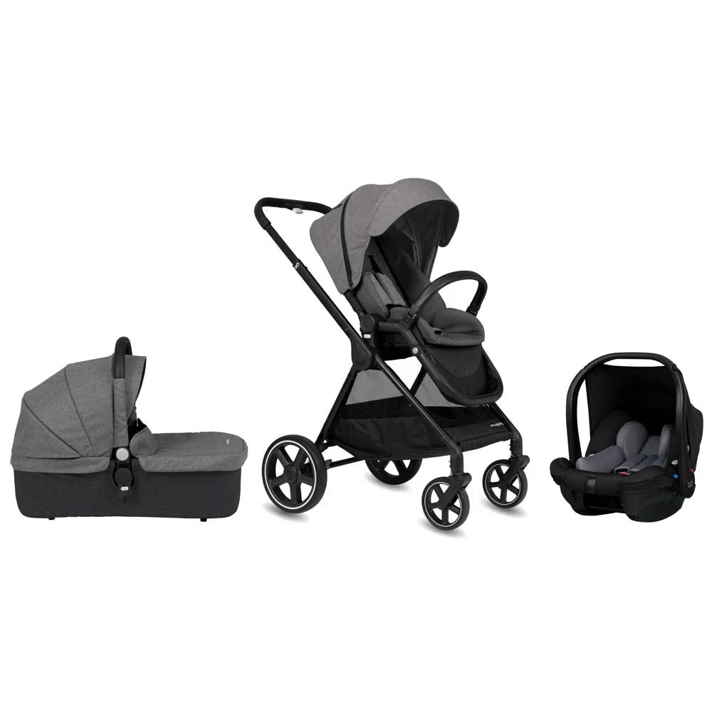 A baby stroller made by Optim, designed to provide a comfortable and safe ride for infants and young children.