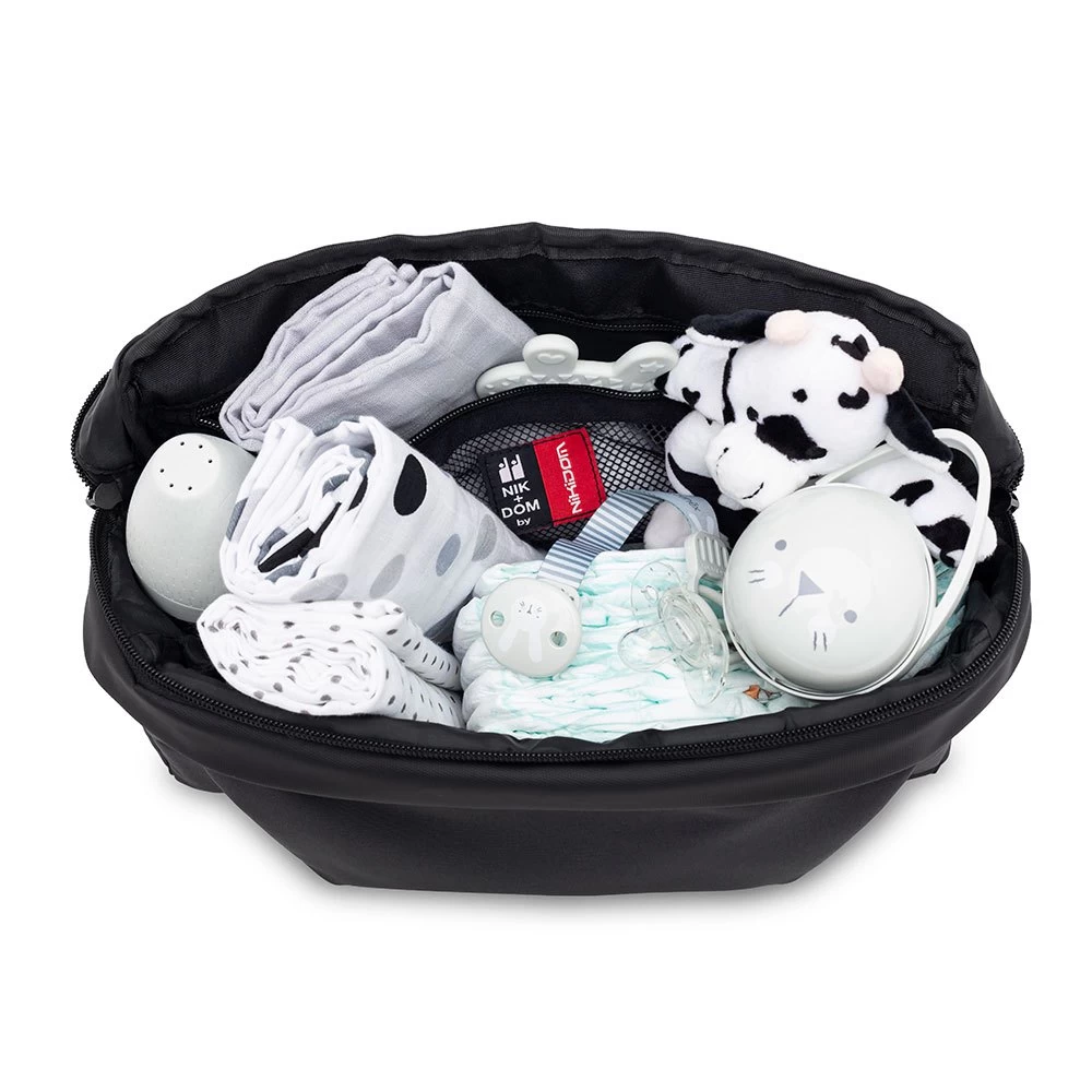 – Thanks to its multiple interior pockets it distributes and orders all the baby´s products.