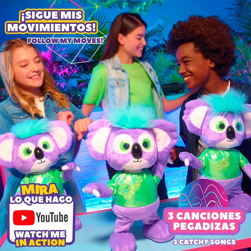Join the funniest movement of the moment with the koala Holly from Party Pets! This soft koala folds its arms and shakes its head when dancing, it can learn new choreography and it glows in the dark! It works with 3 AA batteries (included).