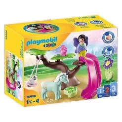 The animals gather in the fairy playground.The fairy, squirrel, owl and unicorn entertain the fairy forest with its fabulous stories.With magical swing and slide.