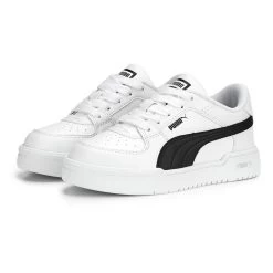 These are the latest additions to the famous PUMA California family of shoes. For over 40 years this model has been making its mark on street fashion, and this latest iteration is guaranteed to preserve that style-setting tradition. They feature a synthetic upper, mesh lining and super comfy sockliner (with PUMA Logo screenprint). Plus, to make them really stand out, they have debossed and foil-printed PUMA branding on the quarter and heel.