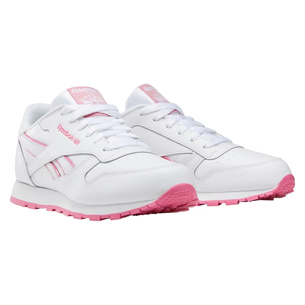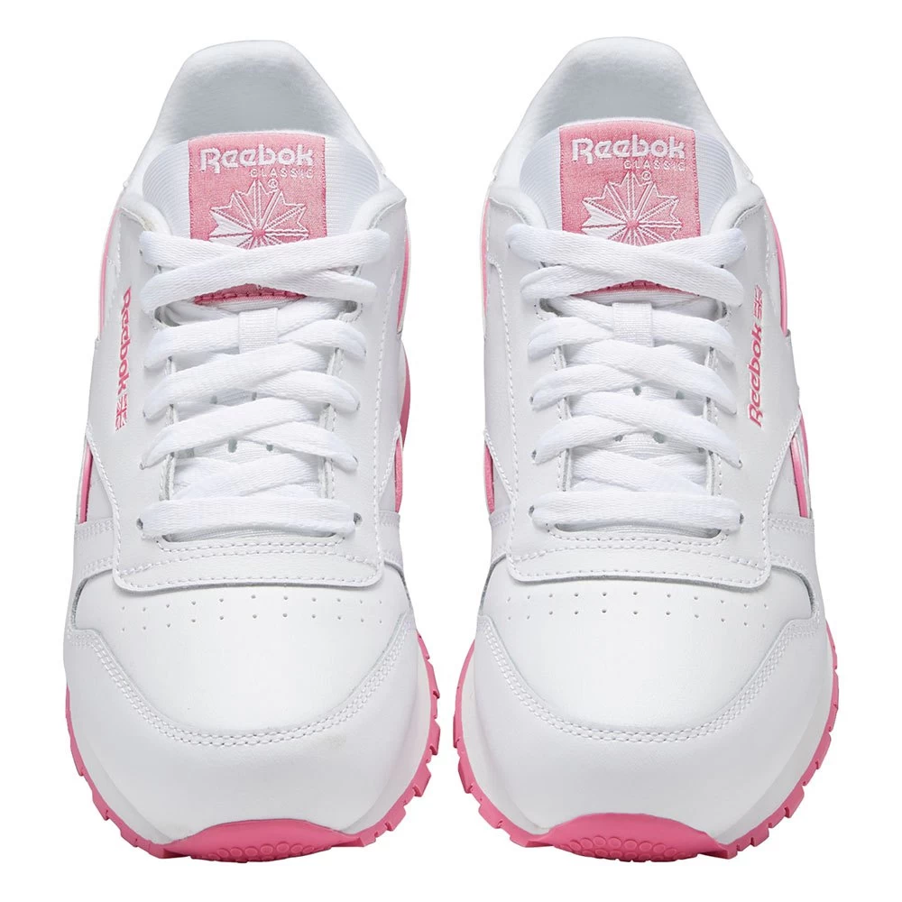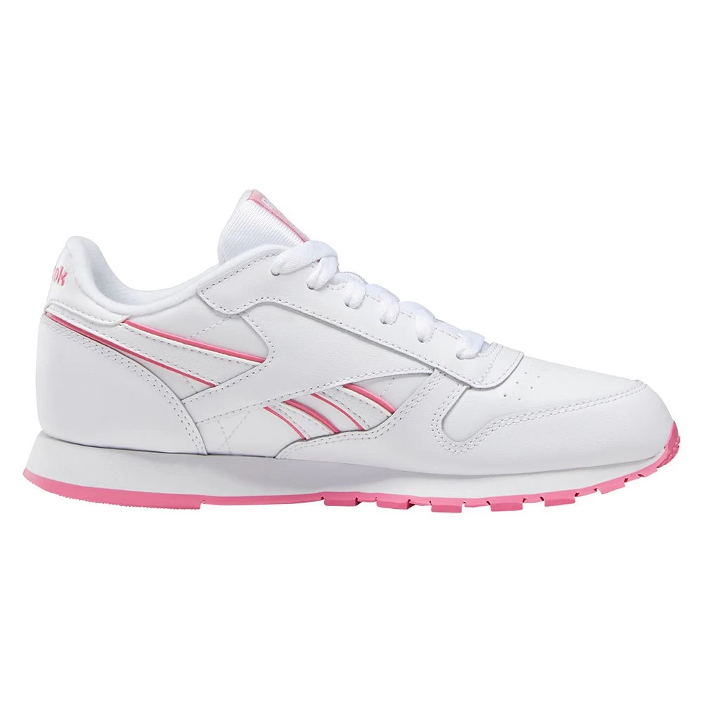 A tribute to turn-of-the-century Reebok style. These junior girls´ shoes feature piping on the side stripes to give them a retro vibe. The upper comes in a traditional, soft leather. A cushioned midsole and durable outsole make them comfortable to wear all day long.