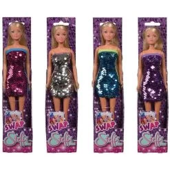 Steffi Love SWAP Doll, 4 Assortment / Steffi Doll with Sequin Dress with Exchange Effect, 29 cm.