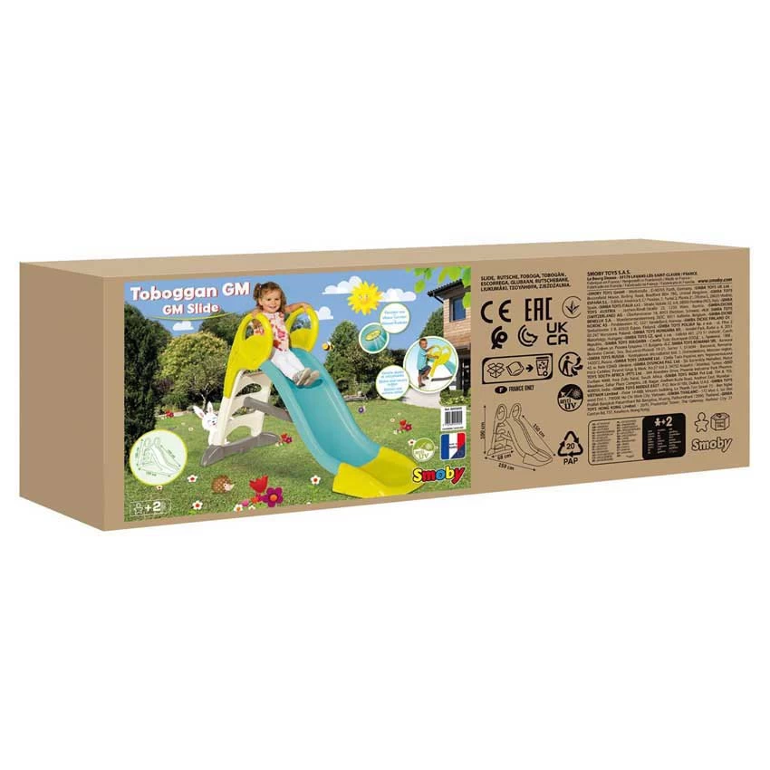 The GM slide will be perfect for your children´s first glides With its height of 1m, its non-skid steps, and its ergonomic handles, it is particularly adapted to children from 2 years old and over.