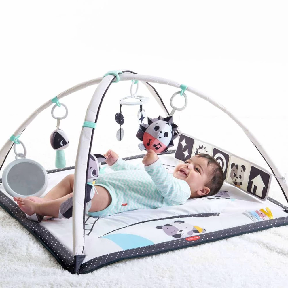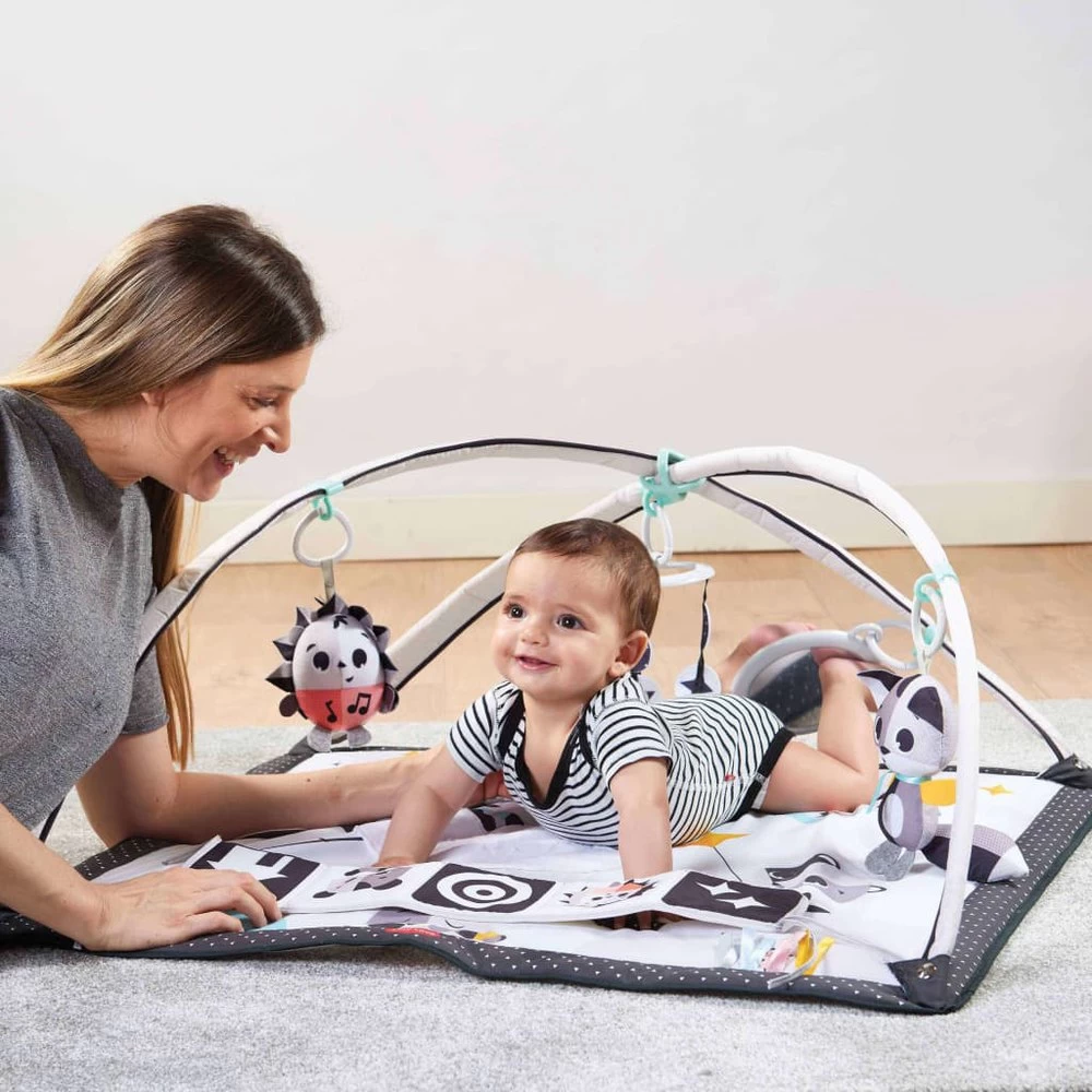 The Magical Tales 2-in-1 play mat from Tiny Love Gymini is a uniquely designed baby activity mat that not only provides hours of fun, but also inspires your babyĀ“s development through various sounds, figures and structures! This baby gym has been designed to boost your babyās 7 developmental wonders, including gross and fine motor skills, visual and auditory cognition, imagination, and more. The included adorable electronic toy features engaging lights and a music playing function with 3 different tunes. Additionally, the Tiny Love baby gym mat boasts two expandable arches that adapt to fit growing baby, while providing two different play modes. When the arches are closed, baby can lie down for visual and tactile stimulation; when the arches are opened, baby engages in meaningful tummy time while being encouraged to sit up and play with a parent. Colour: Black and white Material: Polyester and plastic Dimensions: 88 x 78 x 45 cm (L x W x H) 2-in-1 baby activity mat with adjustable arches 18 developmental activities encourage cognitive function, imagination, gross and fine motor skills etc Black and white design stimulates the senses and promotes healthy visual development Extended tummy time experience helps babiesā growth and progress Including musical toy with 3 different melodies Including mirror Including soft take-along book 3 x AG13/LR44 battery required (not included) Recommended age: 0-12 months