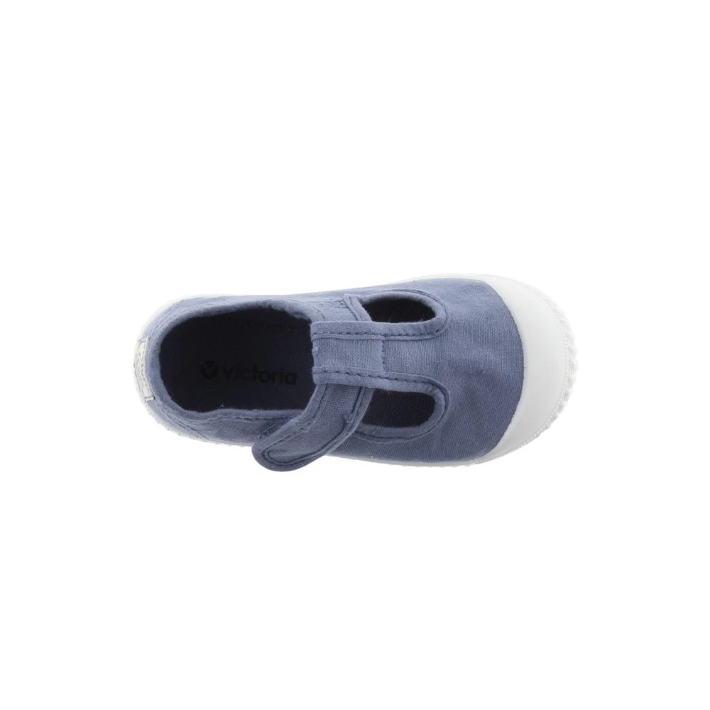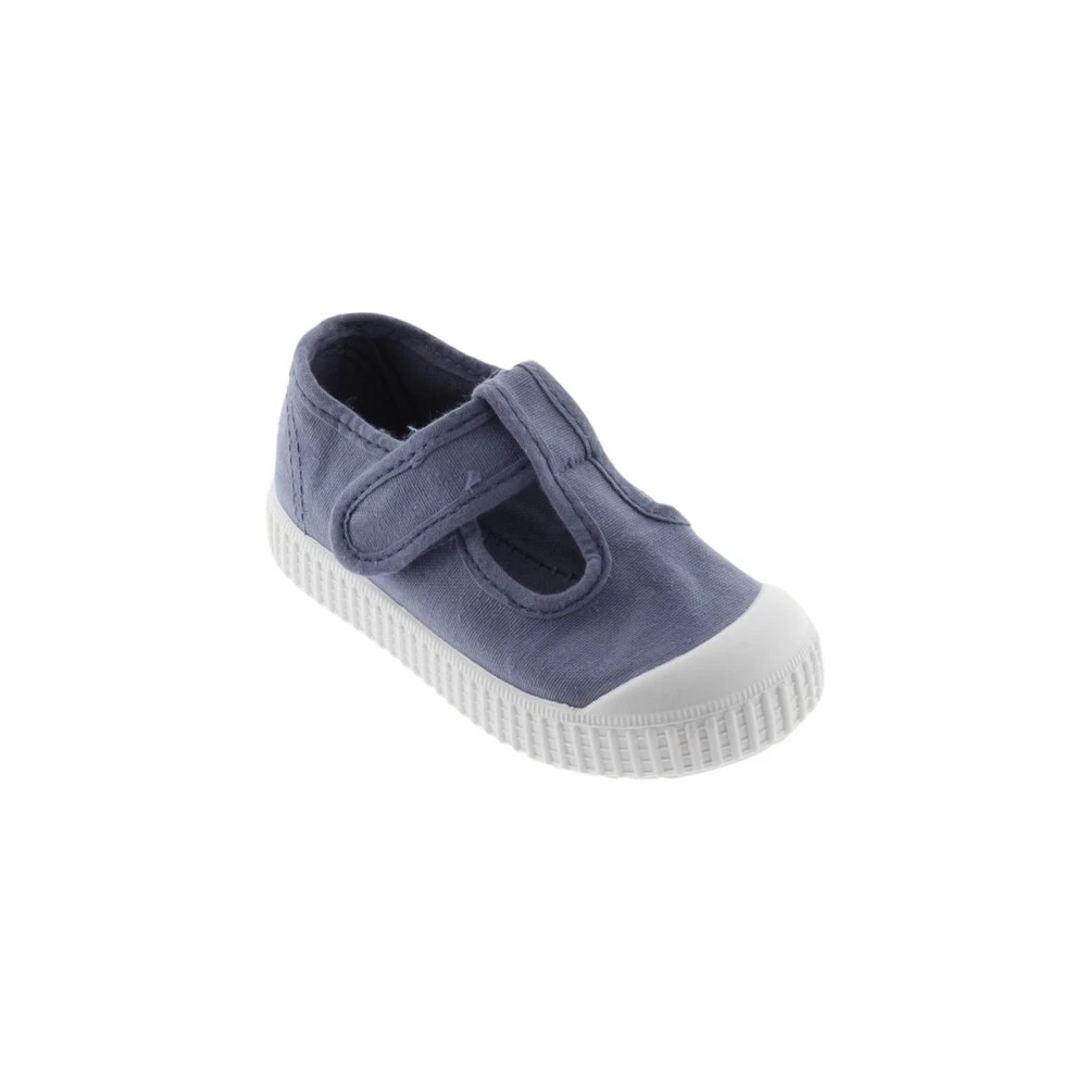 Classic Victoria children´s sandal. Made in Spain in super resistant dyed canvas. Rubber toe cap and Velcro closure to help children put on their shoes by themselves, this is a durable model made from recycled materials. Made in Spain, these sandals are durable and durable because they are easy to wash.