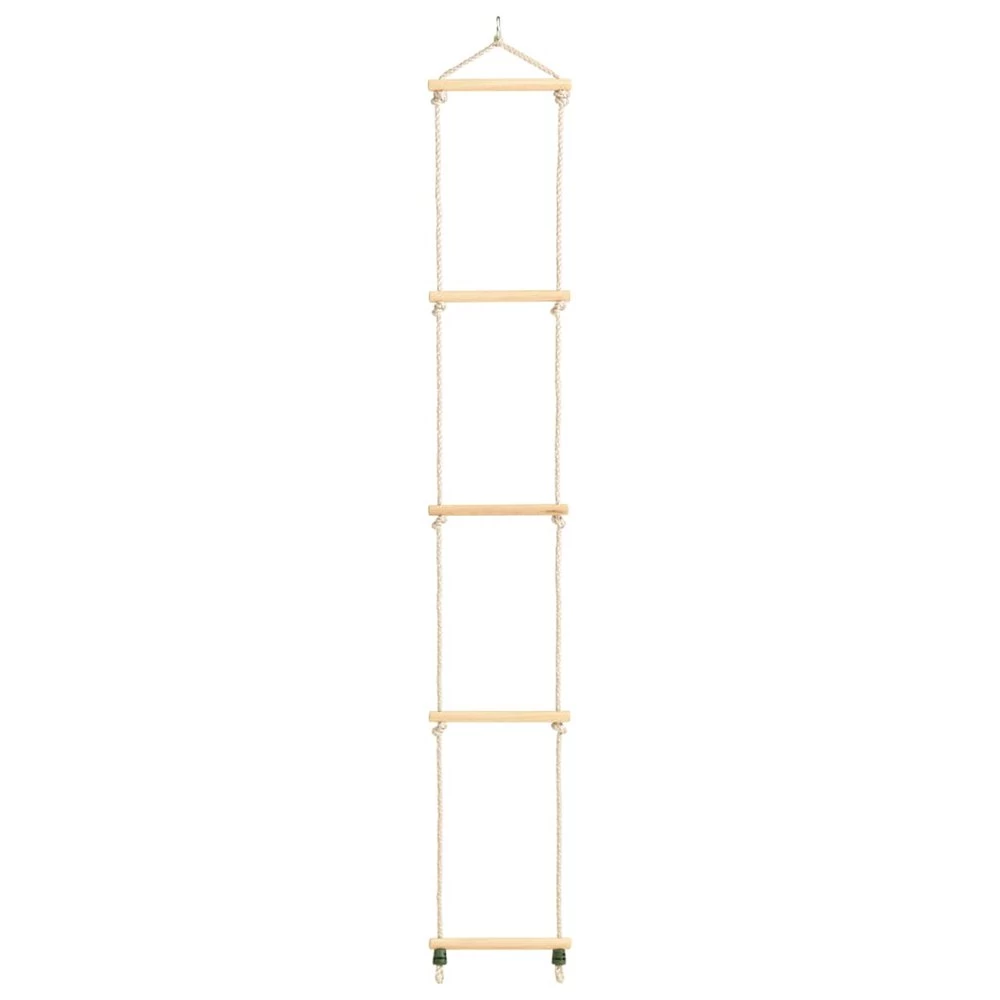 This wooden rope ladder, with 5 levels, ensures your kids have great fun! With solid wood frame and PE rope, the rope ladder is sturdy for your little one to enjoy climbing up and down. The ladder is weather-resistant, therefore is suitable for indoor and outdoor use. Additionally, the climbing ladder has two rope ends with suspension rings for attachment to a swing or a play tower. Important note: The ladder is suitable for kids over 3 years old. For safety, please make sure the rope ladder is only used under the direct supervision of an adult. Material: Solid wood, PE Size: 30 x 168 cm (W x H) Thickness: 6 cm Features 5 levels For kids over 3 years Maximum user weight: 50 kg Suitable for indoor and outdoor use Assembly required: No